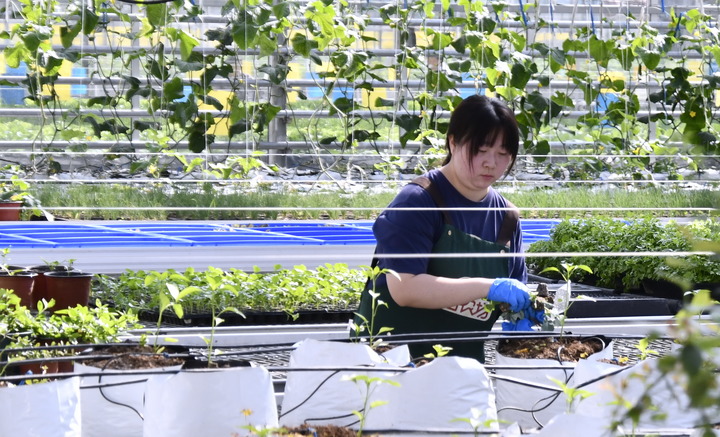 工作人员在北京朝阳区来广营的国家数字农业创新应用基地内管理蔬菜(2025年3月18日摄)。新华社记者 李欣 摄