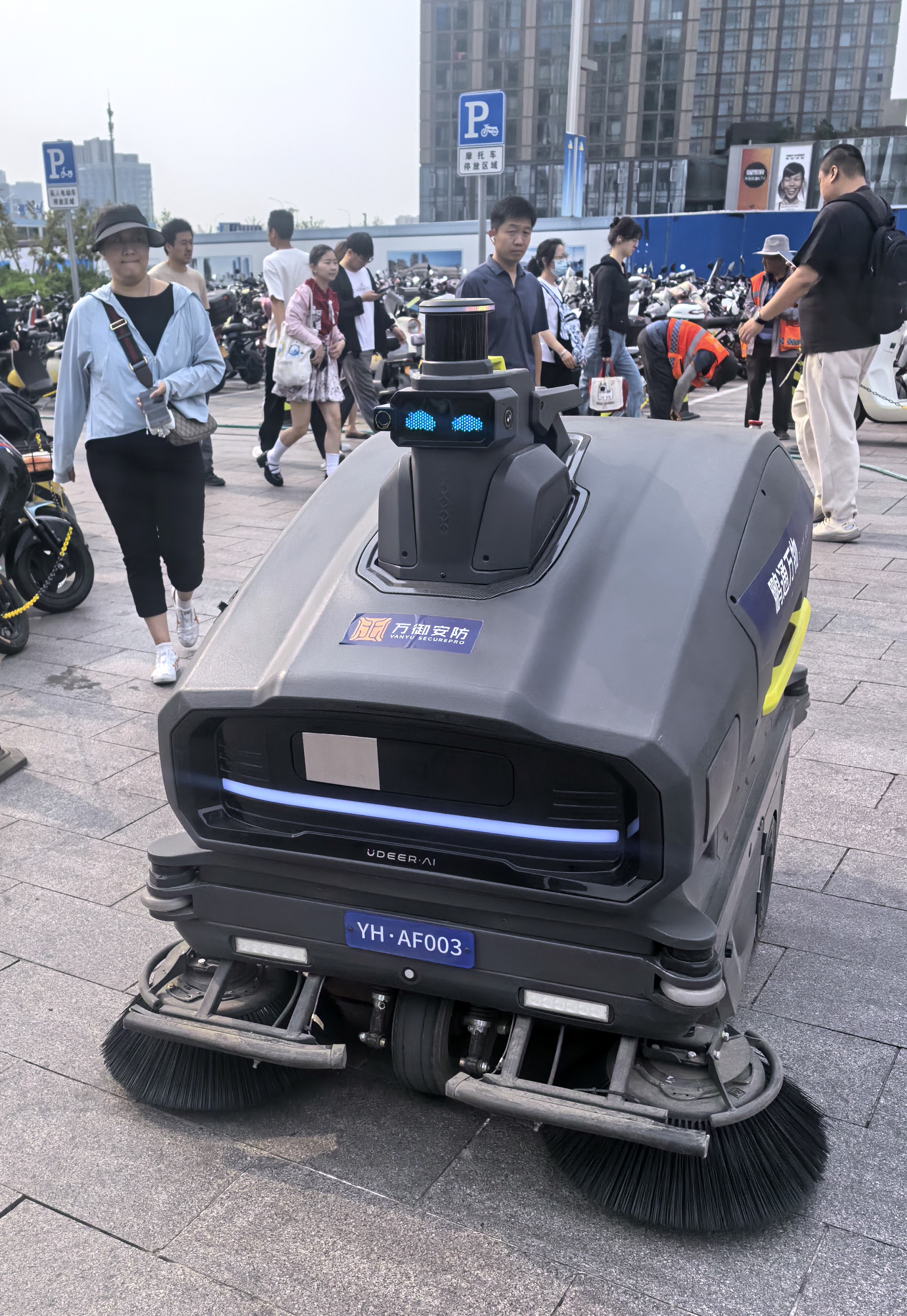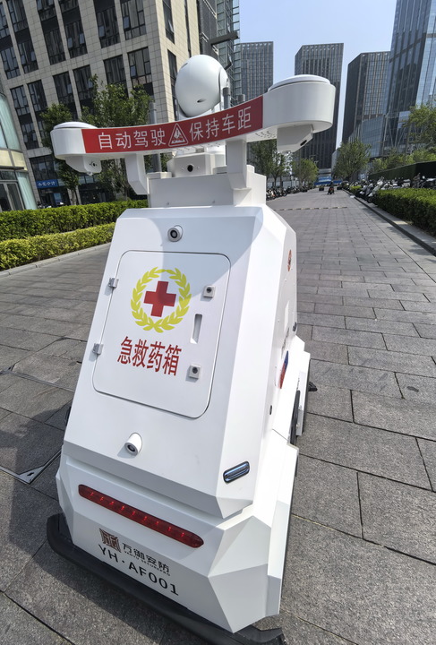 一台应急安防机器人在北京通州运河商务区巡查(2025年6月12日摄)。新华社记者 李欣 摄