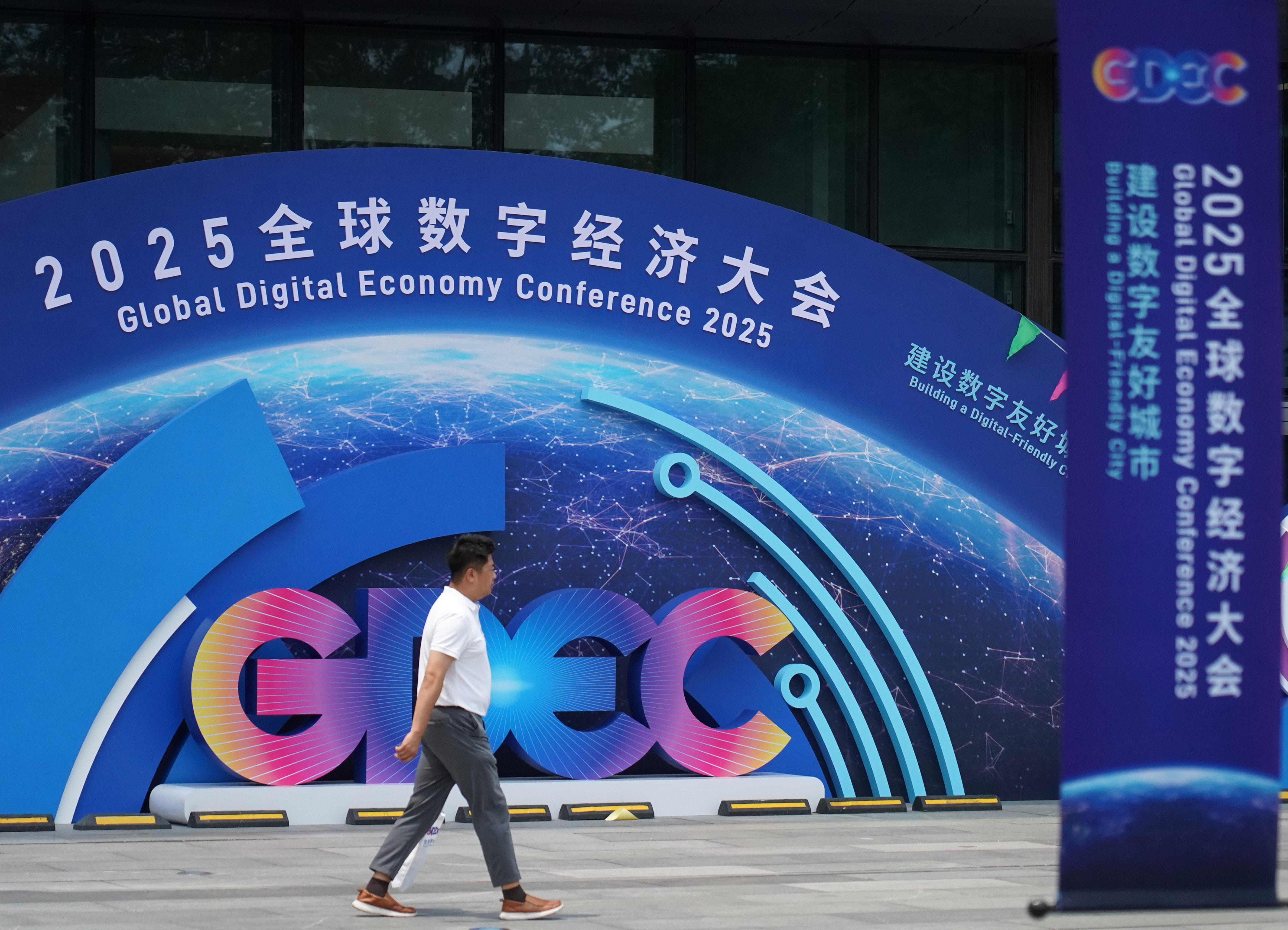 这是2025年7月2日拍摄的2025全球数字经济大会标识。新华社记者 张晨霖 摄